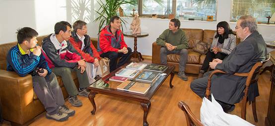 (代表团成员与智利北部天主教大学校长进行亲切地会谈)